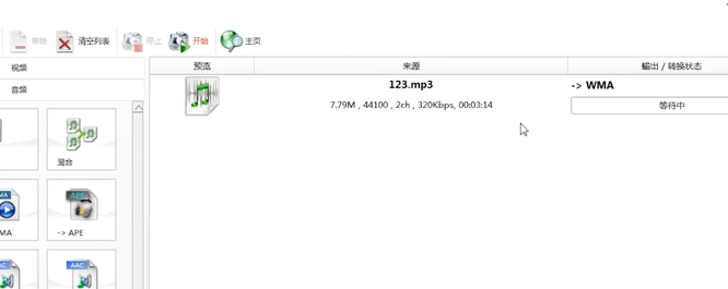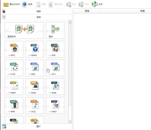 3、然后打開“音頻文件”選項(xiàng),點(diǎn)擊選擇自己需要轉(zhuǎn)換的一種音頻模式,點(diǎn)擊選擇“音頻文件格式”,出現(xiàn)一個(gè)音頻文件選擇界面。