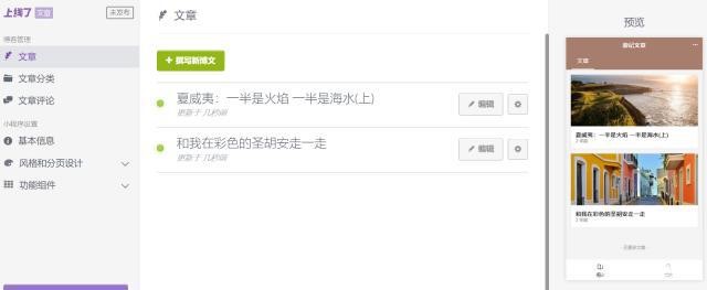 然后選一個喜歡的模板,進入小程序編輯頁面。點擊“撰寫新博文”,可以添加自己的新文章。